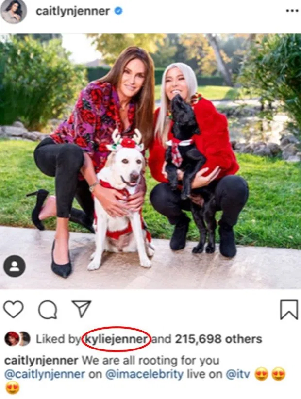 Kylie showed her support on a post showing a picture of Caitlyn and her dogs, which read: “We are all rooting for you @caitlynjenner on @imacelebritylive on @itv.”