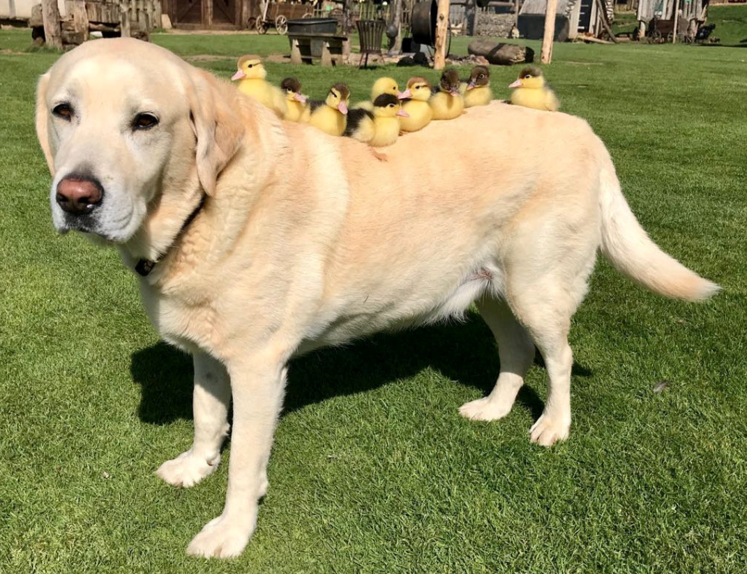 An 11-year-old Labrador, who adopted nine baby ducklings last year after their mother disappeared after giving them birth, has now become a foster dad to six orphaned ducklings.