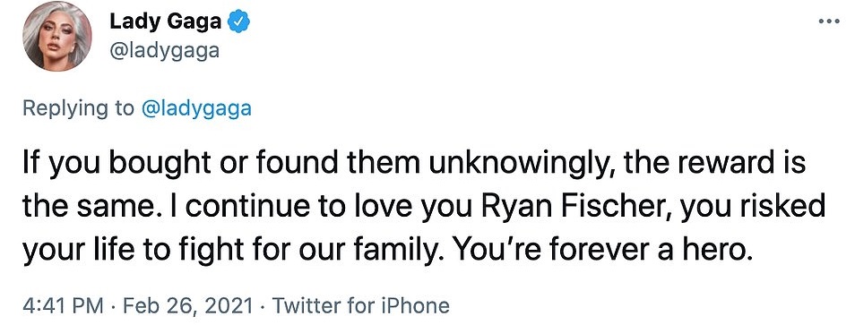The singer also took the opportunity to double down on her promise to reward the person who has her dogs, Gustav and Koji, with $500,000 for their safe return.