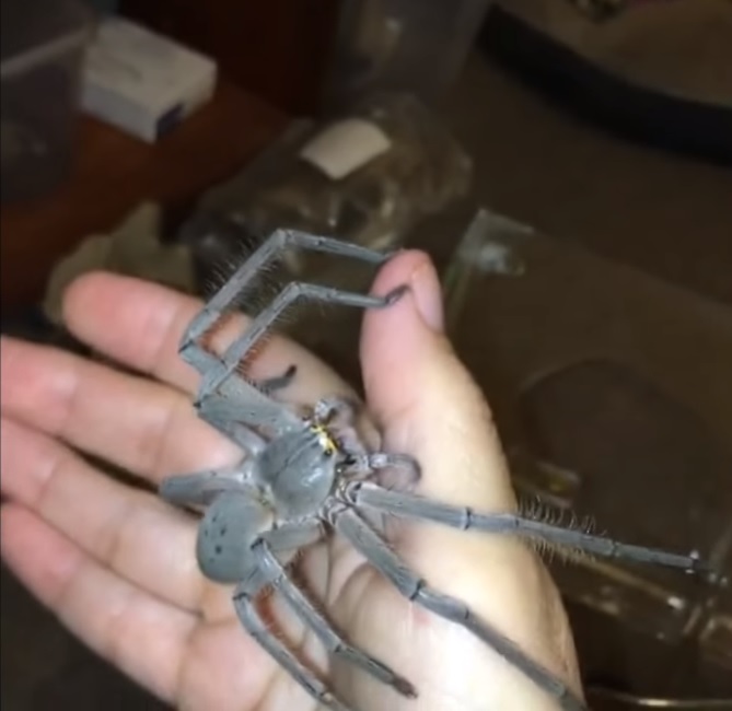 Lisa quickly responded by explaining that Smuk “was found in a shed on my friend’s property. Huntsman commonly is found in households. This particular one probably had more prey than it could handle being where it was, but it wouldn’t be out of the question for it to find its way to the house.”