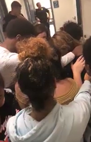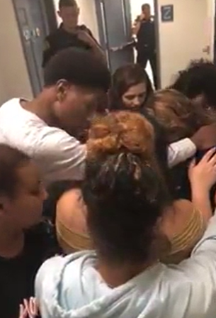 In this video, a large mod of students decided to save a young girl’s life in the dorm room as she stood in her room with a sharp object in her hand ready to kill herself when the mod enters and takes it in, protecting her from taking her life.