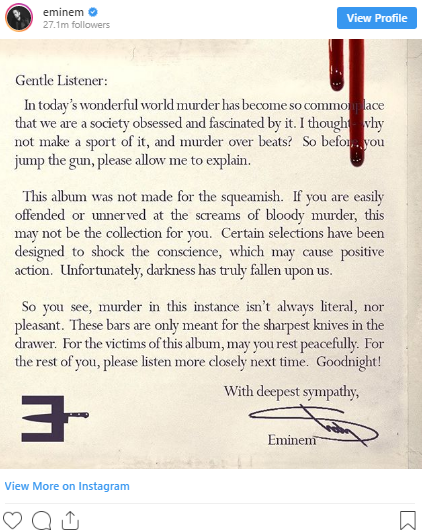 Recently, Eminem was found issuing a statement for a controversial album that addressed the backlash he has received.