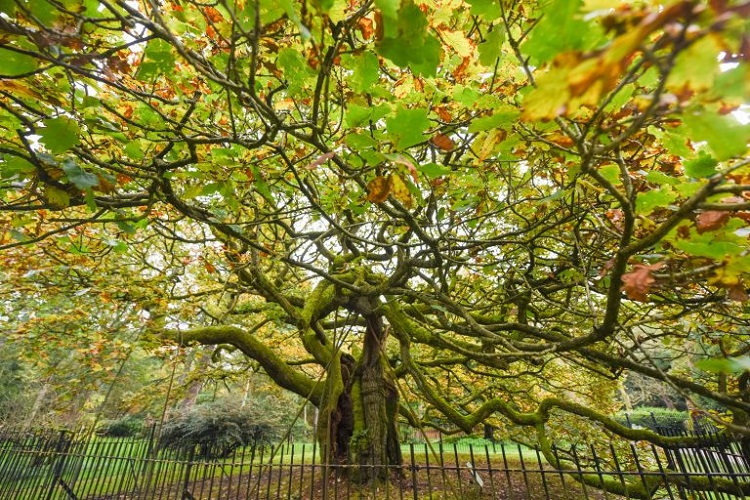 The tree is located in Calderstones Park where a medieval court was held for a time. Legend says that during medieval times, the ‘Hundred Court’ would meet under the tree because they lacked a courthouse.