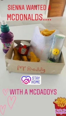 The father even added a free toy with the meal box and a small jar of ketchup. You have to give to him, he tried to make it as realistic as possible. He posted the story with a caption saying, Sienne was craving McDonalds with McDaddy’s.