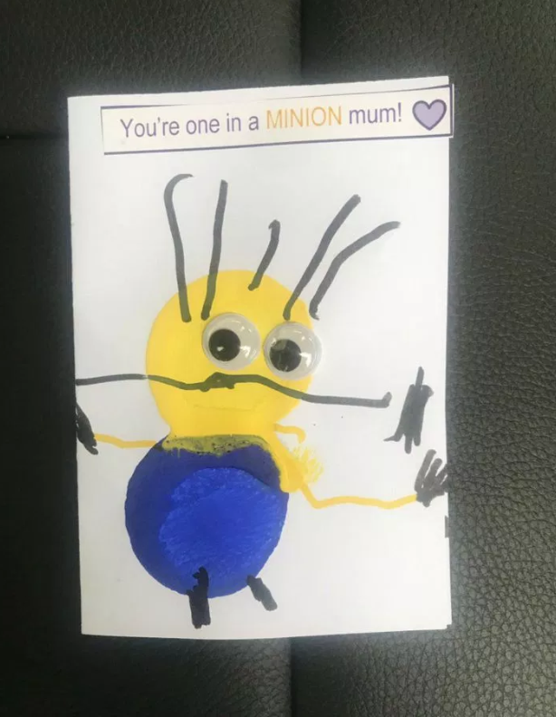 Ella lost her mother, Jennifer, because of cancer and she misses her so much that she sent her a letter. She sent an adorable popped up mum in a minion card for her mother.