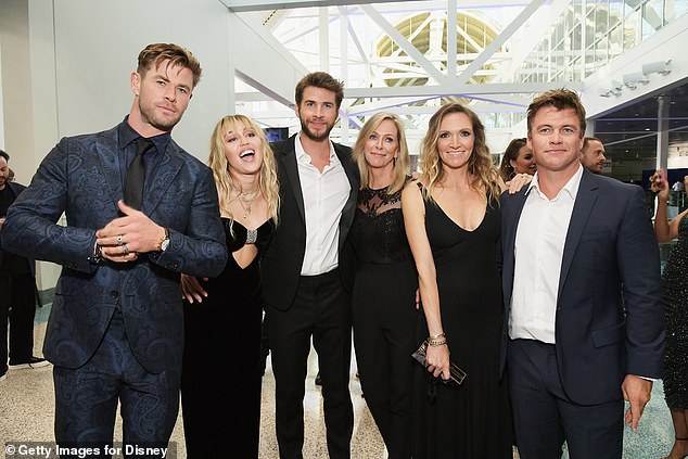 The Hemsworth boys posed with their stunning mother Leonie, Chris’s wife Elsa Pataky, Liam’s wife Miley Cyrus and Luke’s spouse Samantha. They all looked stunning.