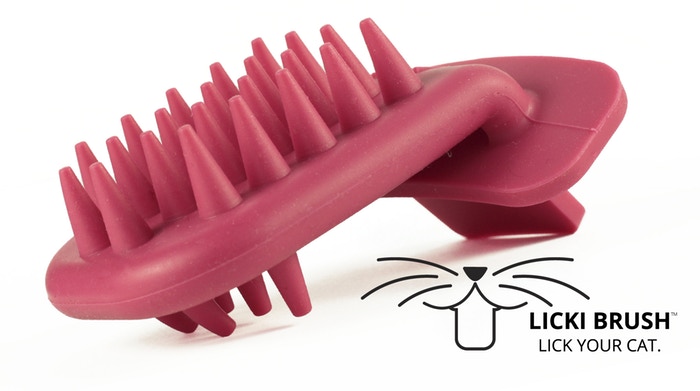 The description of Licki brush reads: “LICKI is a soft silicone brush you can hold in your mouth to lick your cat – like a mama cat grooms her kittens. LICKI is designed to feel pleasurable to your cat’s sensitive skin and offers a unique bonding opportunity for human and cat.”