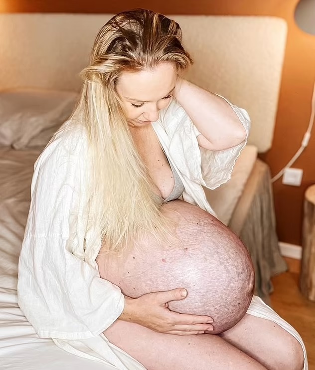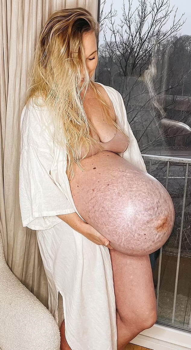 Shocking her 260,000 followers, the mom also shared a series of photos showing her bulging stomach riddled with veins.