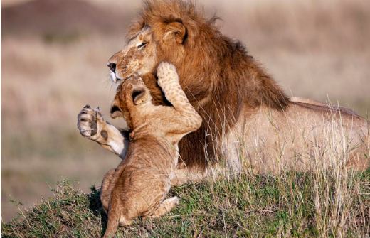 The photographer said that the lion was pretending as if he hadn’t seen its cub for a long time and suddenly started playing happily with him.