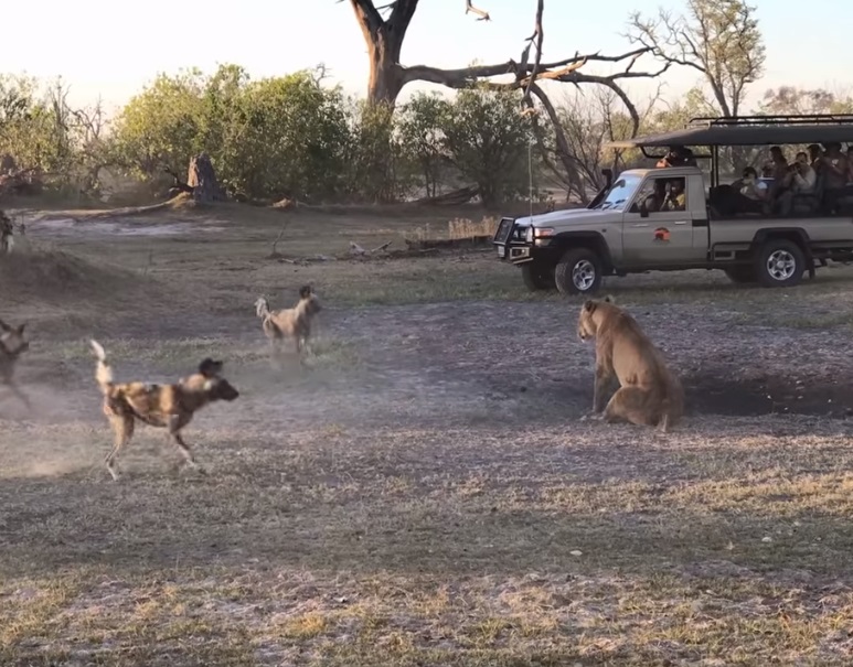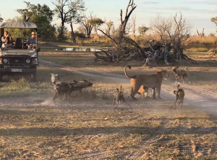 The safari guide said that all of her previous cubs didn’t survive Botswana’s wild kingdom and this cub was her only hope. The wild dogs kept on attacking the pair but the mum didn’t move an inch. At last, they gave up and moved on.