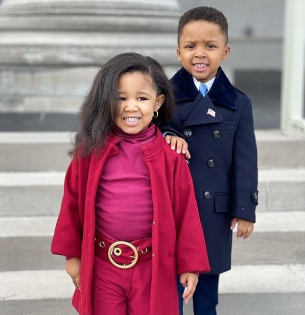 Little Barack Obama, Zayden, sported a dapper blue coat and an American flag pin.