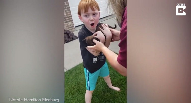 Video shows Xander being led outside as his grandparents pull in on the driveway. He’s asked to close his eyes while his grandparents get out and then the puppy is placed into his waiting arms. The look of awe on the little kid’s face was priceless and his reaction afterward even doubly so.
