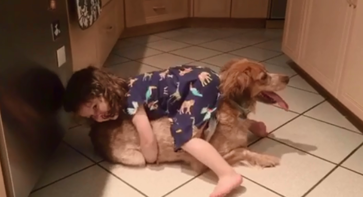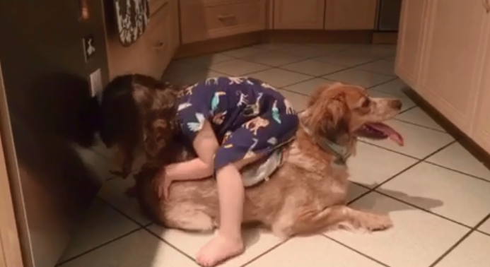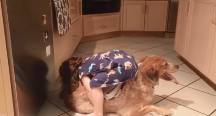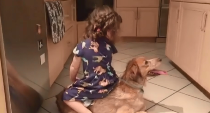 You definitely need to watch this video where a cute, little girl lean on the dog to comfort it during the hectic times.