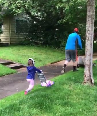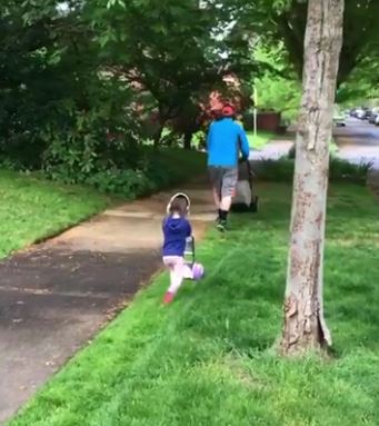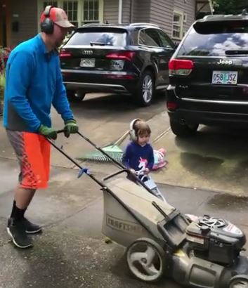 Watch this father-daughter duo ready to mow the lawn: