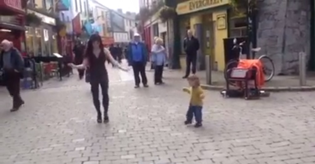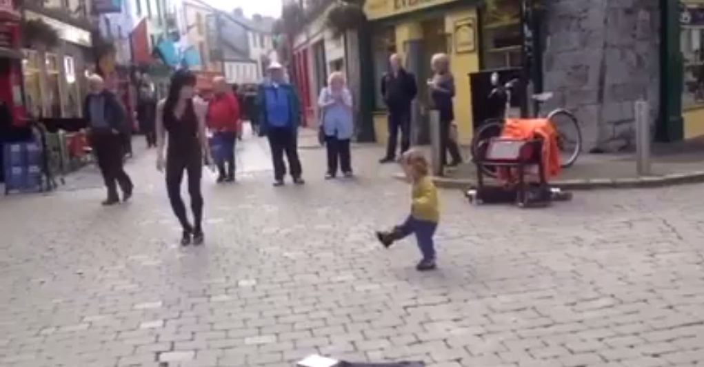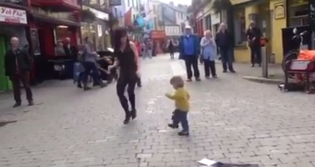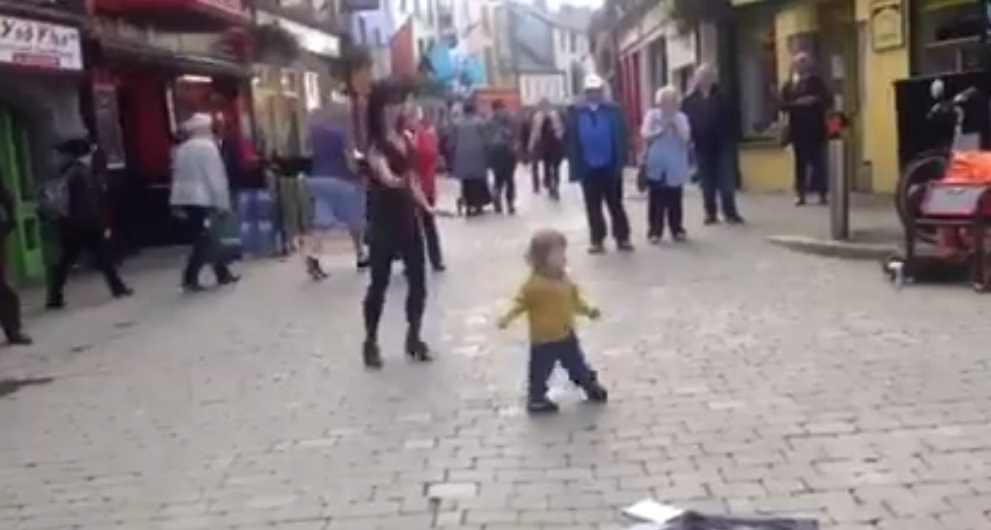 The little girl, Georgina, was caught on camera as she was attempting to copy the moves of dancing teacher Emma O’Sullivan who was performing on Store Street in Galway City.