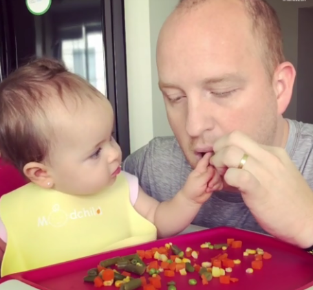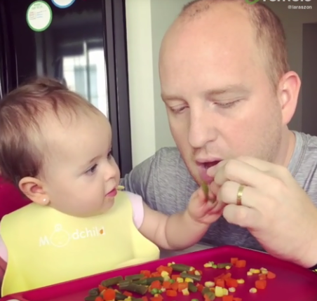 Here is a video of this cute little girl who is extremely enjoying her veggies but suddenly an intruder came in and is now stealing her veggies. Is she going to let this happen? No way in the world.