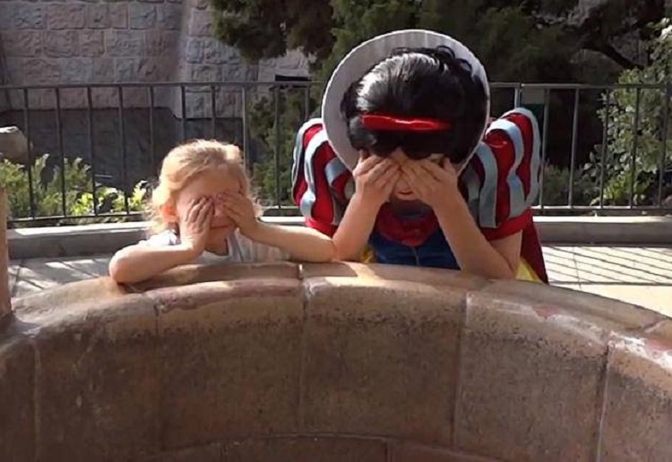 And to help with the magical surprise, Snow White even positioned herself outside longer than planned. Both she and Alyssa went over to the well, they both covered their eyes, and the little girl made a wish.