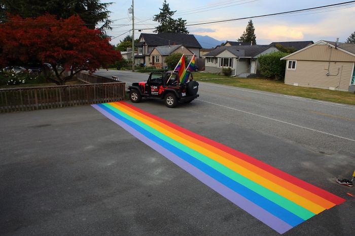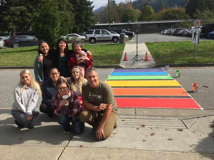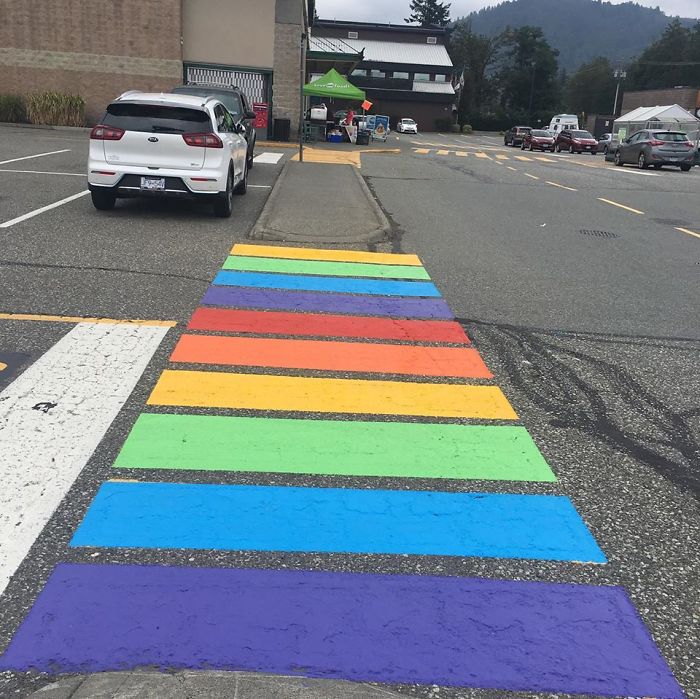 And so, 16 rainbow crosswalks in the town were born. The first ones to take action were the indigenous people who got their hands dirty as they painted a colorful crosswalk in front of a local shopping center.