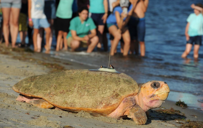 She was taken to the aquarium, and she spent seven months in rehabilitation to get well before going back to the sea again. While releasing her back to the see more than 100 people gathered around, including the staff from the New England Aquarium to watch her go back and only come near the shore to lay eggs.