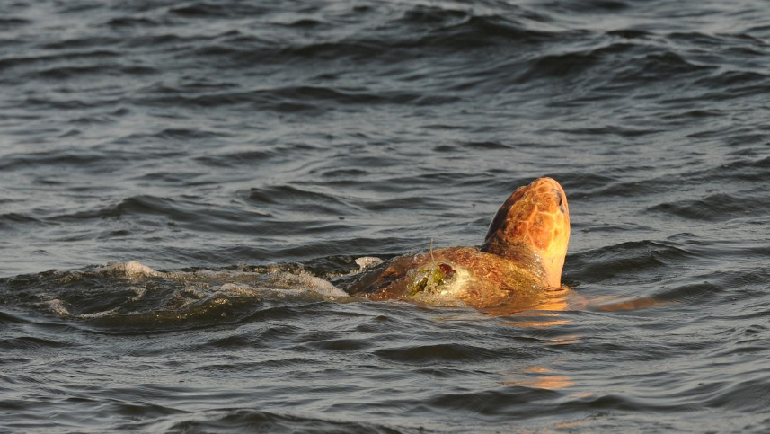 The turtle patrol volunteers first saw her on the shore and thought that it is dead, but when they saw some bubbles coming out, they quickly called more volunteers to lift it and take her to the rehab.