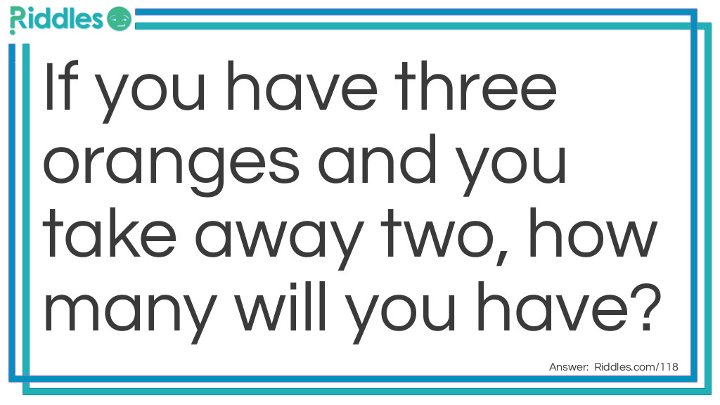 The right answer is 2 oranges! In case you’re wondering why, well, if you took two oranges, you’ll have the two that you took. Did you get it?