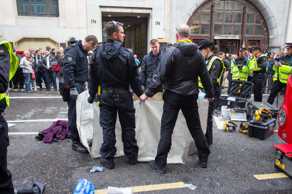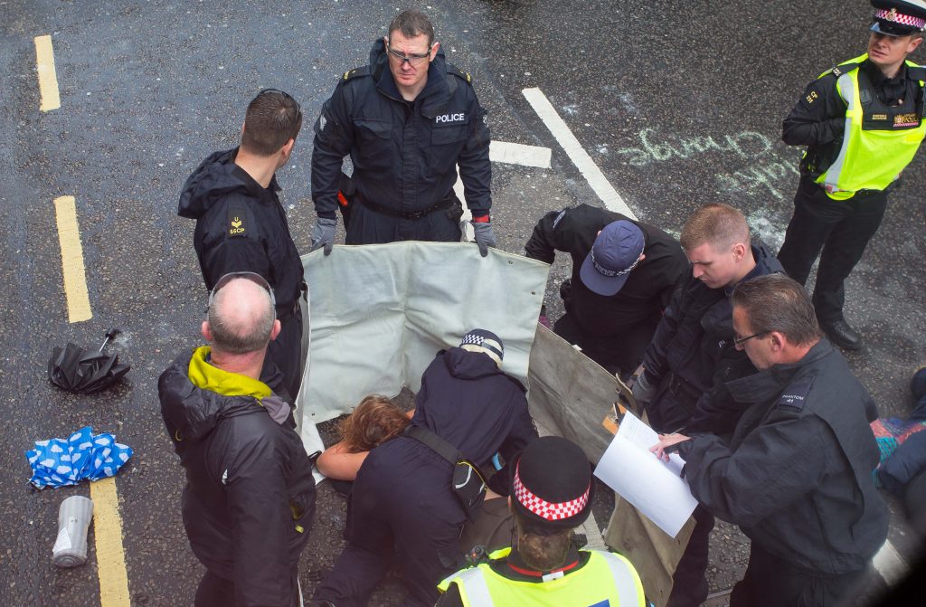 The woman was protesting with the Extinction Rebellion, glued her upper body on the middle of the road in front of the investment banking company, Goldman Sachs on Fleet Street, according to The Sun.