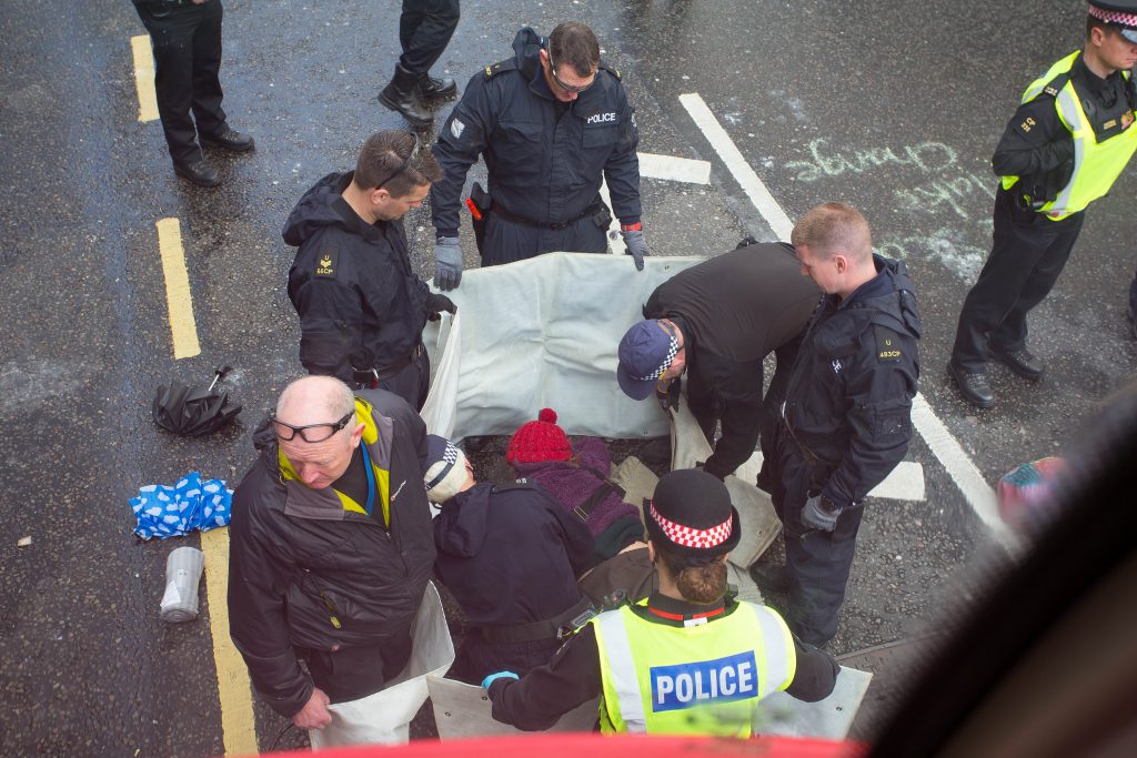 They are gluing themselves on the entrances which block the London Stock Exchange entry and also climbing the top of the DLR train.