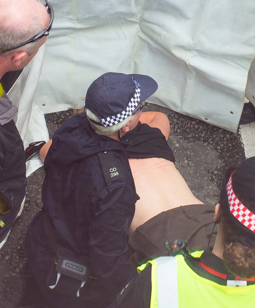When all this was looking normal one of the women was found gluing her breasts in the middle of the road in London. The stunt was intense. She was lying there with her glued breasts on the way.
