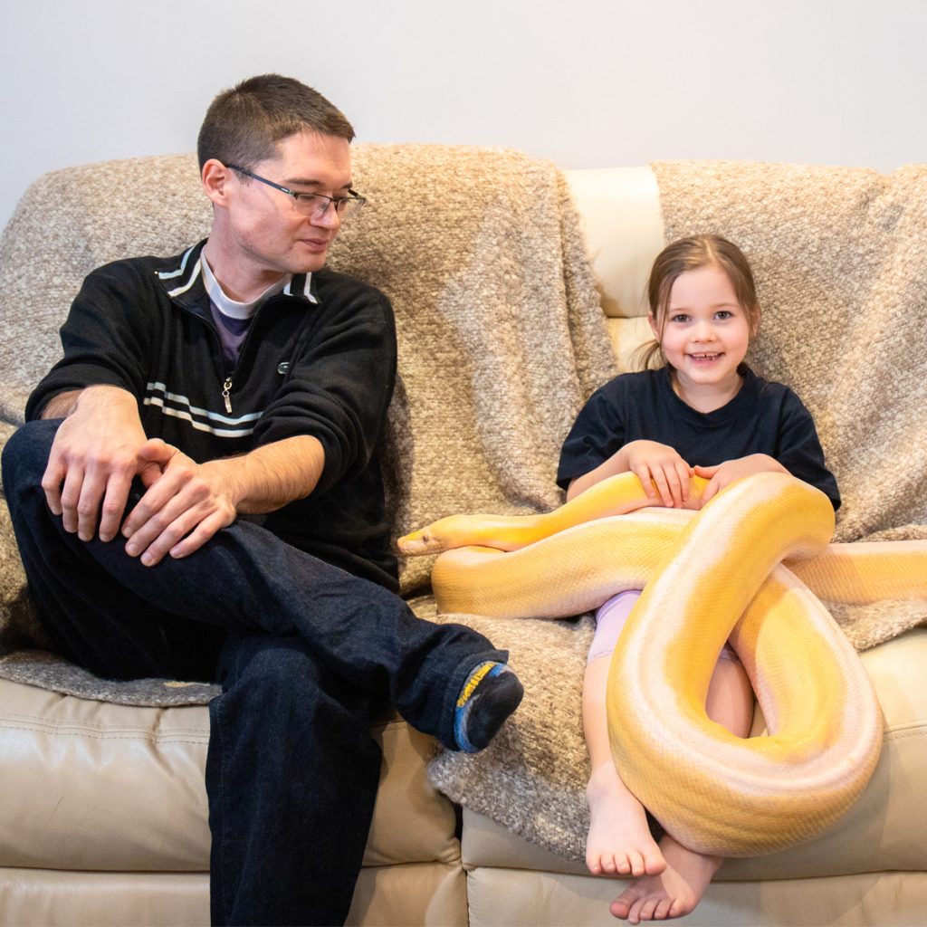 You can often see her on Ed’s Instagram playing and cuddling with the snakes without a hint of fear of the predators.