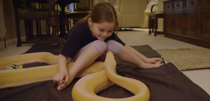Watch a video about a 7-year-old girl’s best friend, a 15 feet long Python!