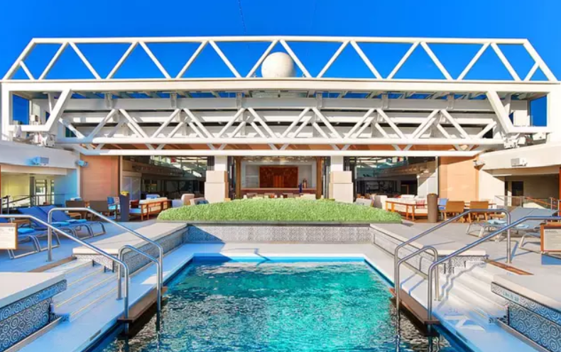 The cruise other than having luxuries rooms, beautiful open spaces on the decks and whatnot, it also has two cinemas, two swimming pools, a LivNordic spa, and a fitness center too.