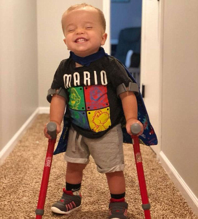 A two-year-old boy who has been suffering from spina bifida since he was born has defied the odds by learning how to walk, and his enthusiasm has been captured in a clip that has gone viral and viewed 23 million times.