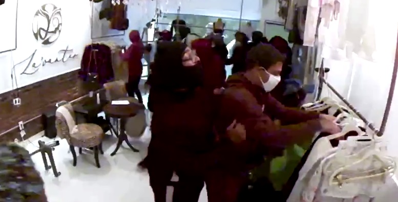 In chilling security footage taken at the store, a large group of thieves is seen charging into the boutique before snatching clothes and ripping accessories from shelves and hangers.