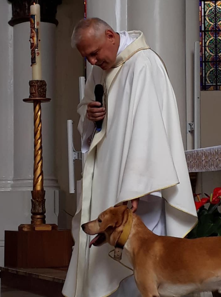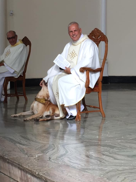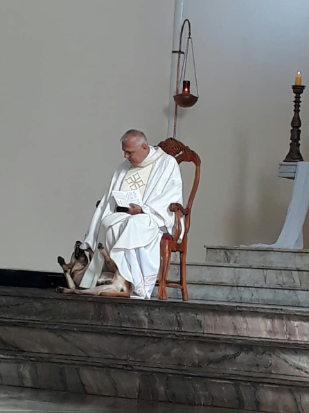 The father himself is an animal lover, and after the mass was completed, he saw an abandoned pup inside the church which he decided to adopt.