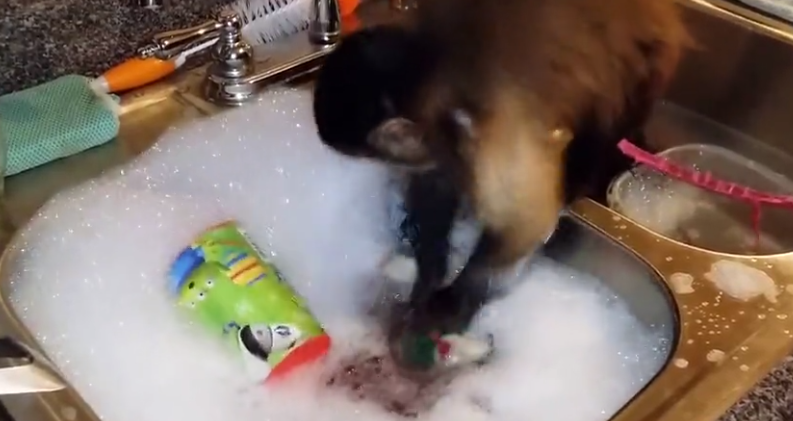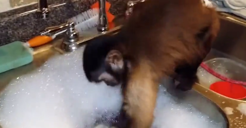 Cassie is a Capuchin monkey who lives in a house with its parents. It loves to live its life in the city and do you know what it loves even more? It loves doing dishes more than anything.