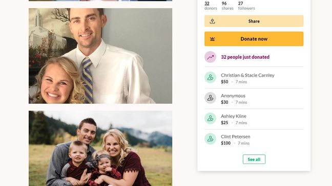 According to a GoFundMe page set up by the couple’s friends, Katherine and Tony Butterfield were shot by an intruder as their three children, ages 4 and under, slept upstairs in their West Jordan home.