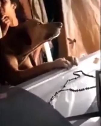 As seen in the emotional recording, the dog was sticking to his owner’s coffin and holding onto it with its paws as another mourner tried to move him away.