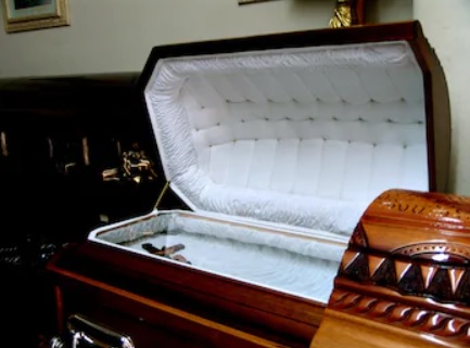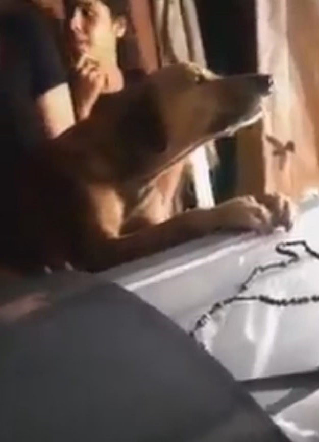 The incident occurred in Lima, Peru, where the dog owner was laid in a white open coffin and displayed for his family to be able to say their final goodbye.
