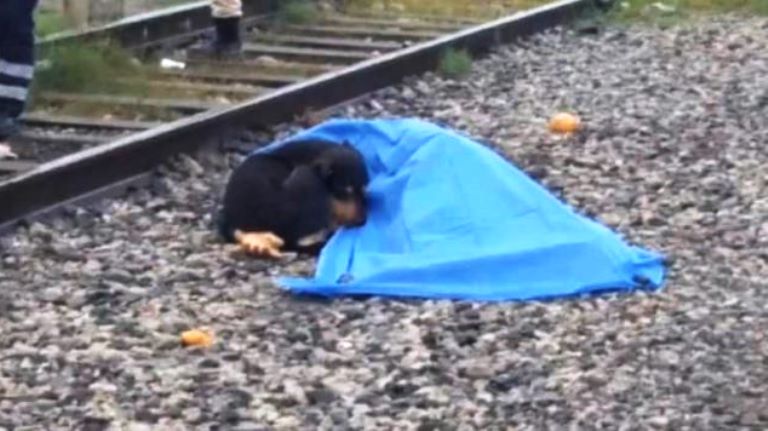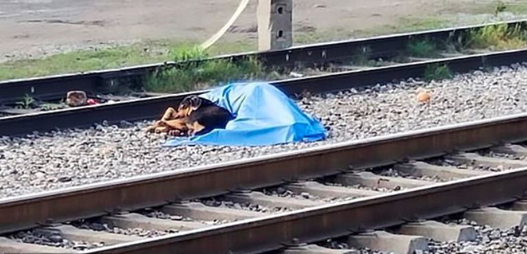 This is a heartbreaking moment a loyal dog stayed next to the body of his owner who was hit by a train.