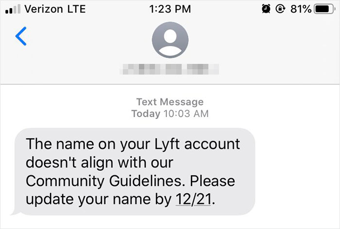 3 Email: We noticed the name on your Lyft account doesn’t align with our Community Guidelines….