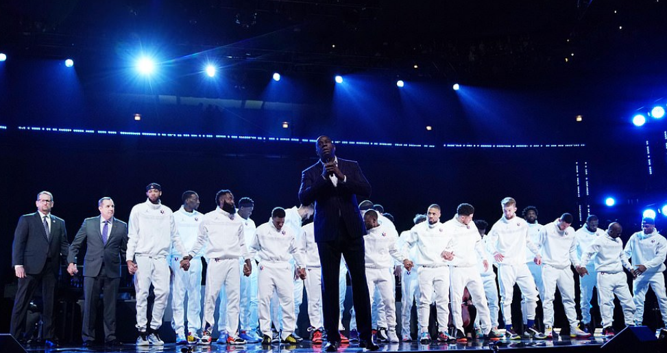 He then asked the audience in the United Center to stand, hold hands, and pay tribute to the basketball legend by observing eight seconds of silence. Eight seconds was a reference to Kobe’s jersey number, which was also eight.
