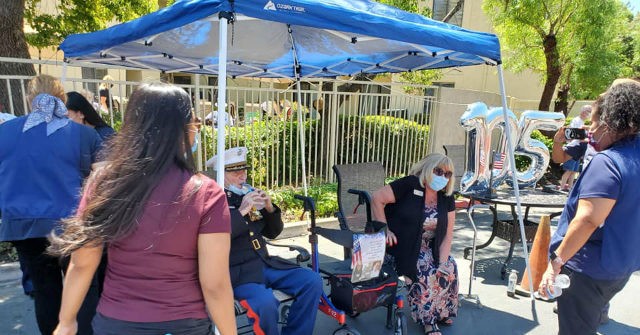 The wonderful event was also marked by a special drive-by birthday salute. He sat outside as visitors and a parade of cars went by to wish him well.
