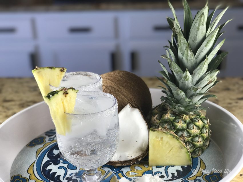 Making a low calorie pina colada for parties and even backyard BBQ’s is quick and easy with this simple recipe!
