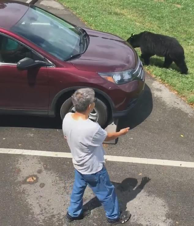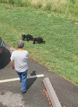 The attempt at petting bear cubs was recorded by Paige Marple who was visiting the Great Smoky Mountains National Park on July 13.