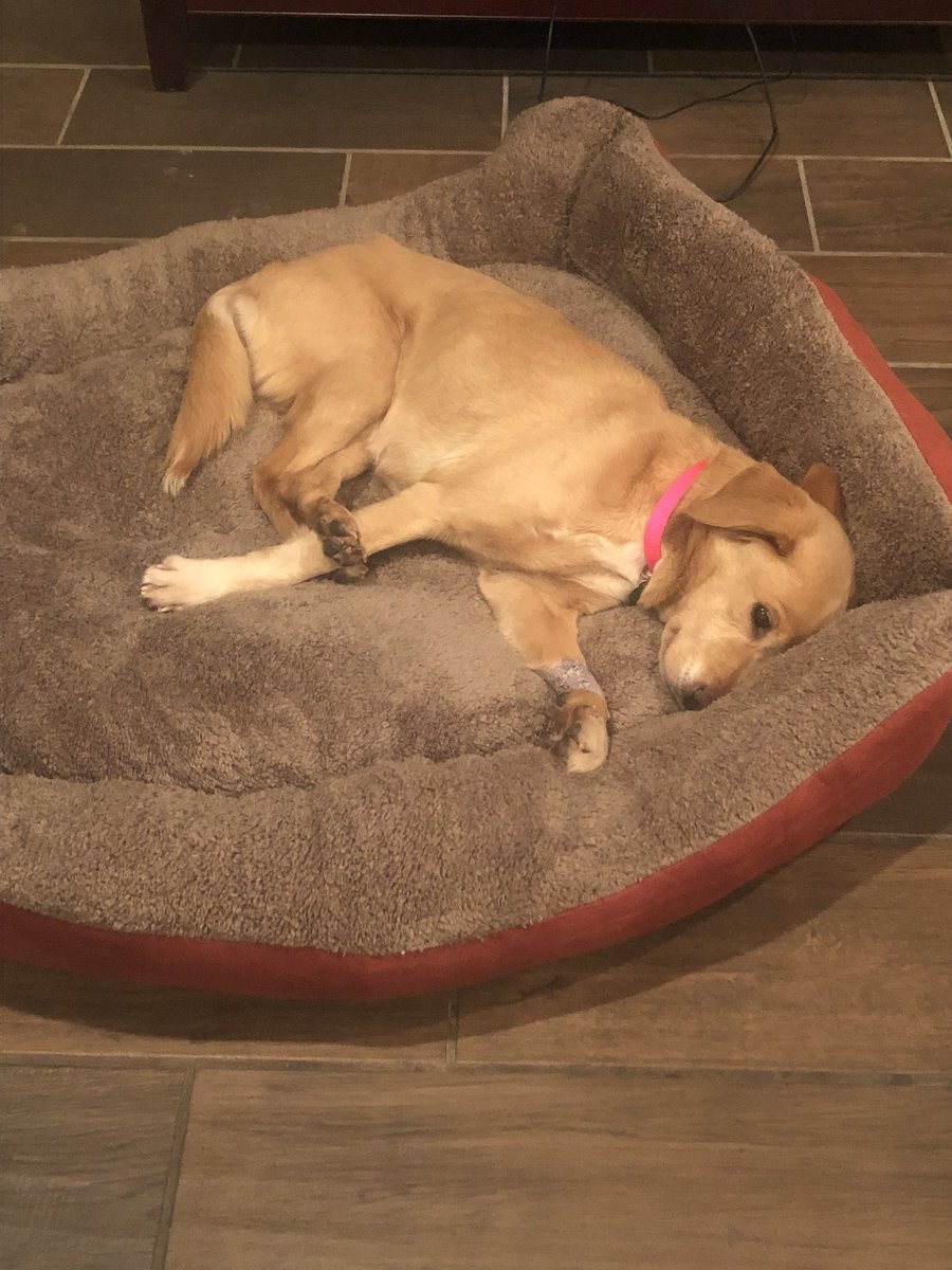 “She has been great with our family, including our baby. She is very sweet and just wants to be loved. Suzy is on the mend and getting better every day. Her body is filling out and she is on antibiotics to treat some of her problems. She’s got a long road ahead but is on the way.”