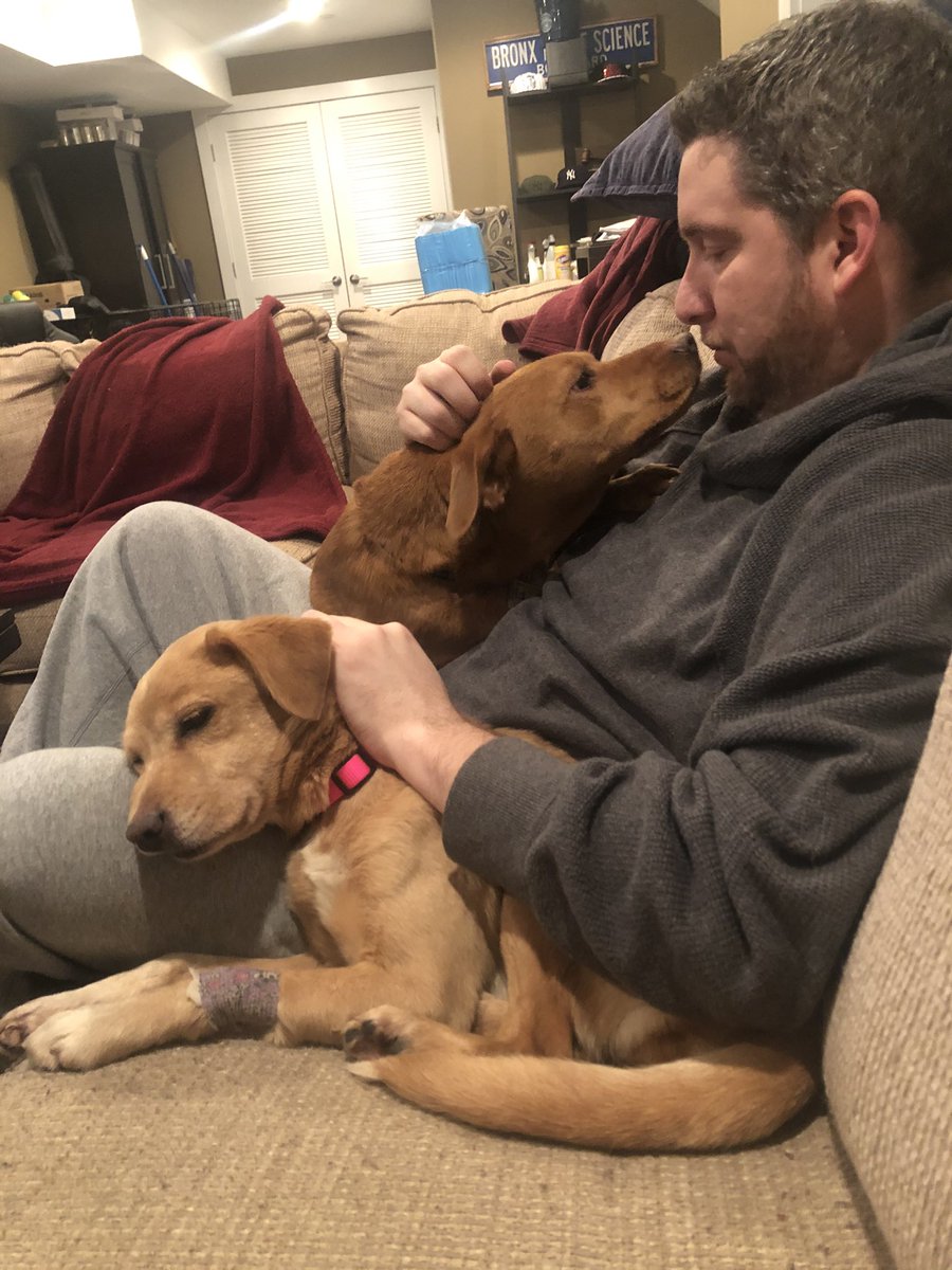 “We decided to adopt her because she had no owner, and our first dog George has brought us so much joy, we could imagine just putting her in the system,” the man added.