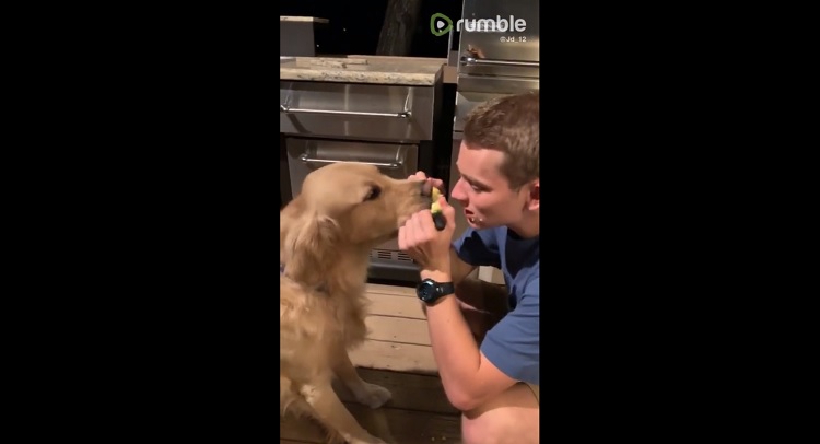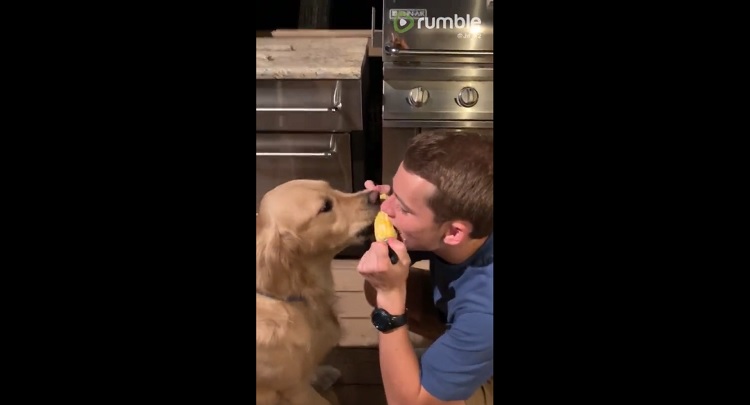 Even though corn is a nutritious food for both humans and animals and a tasty snack that any dog would love, Gunner shows enough restraint to only munch at the part that’s being presented to him, allowing his human pal to also partake of this delicious treat.