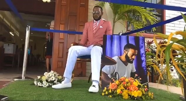 Many people did not realize that he was the deceased even though he was sitting next to a huge photo of himself.