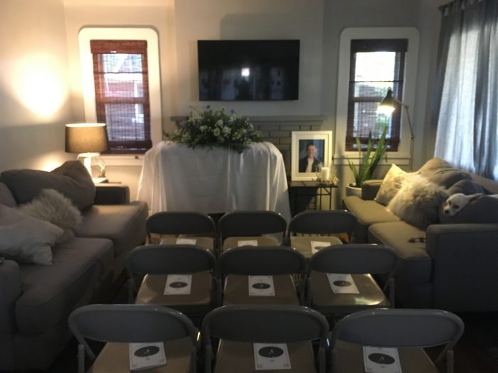 To celebrate Eli’s birthday, Skylar decorated their friend’s house for the surprise funeral, making a fake casket using pillows and an ironing board.