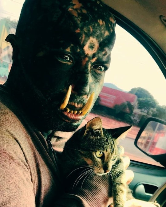 Also known as Orc, the tattooist from Iguatemi, Brazil said he got his first tattoo at 15 and his first body modification when he was 35.